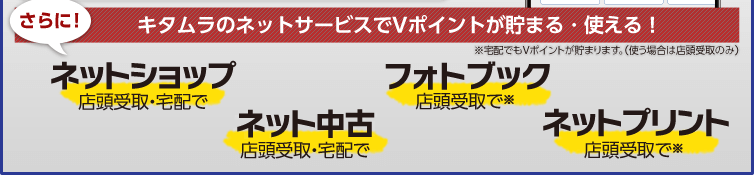 キタムラ会員の登録に加え、Vポイント利用手続きが必要です。